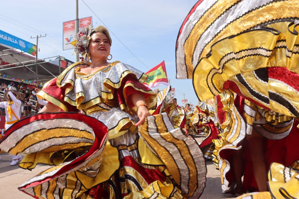 La cumbia volvió a ocupar el centro simbólico del desfile. En su ritmo conviven tres continentes: el golpe profundo de los tambores africanos, el lamento melódico de las flautas indígenas y la elegancia de vestuarios que evocan herencias europeas. Esa mezcla no es casualidad; es el ADN del Caribe.